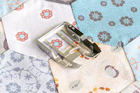 Pressarfot för exakt sömsmån (1/4“) 0.63 cm, till lappteknik och stickningar. Använd med fördel raksömstygnplåten med litet runt hål och vinkelguidelinjer.